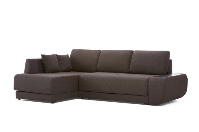 The corner sofa bed Consul encourages relaxation and provides conditions for comfortable sleep. A special feature of the model is a wide armrest with a hard pad on which you can place a glass or coffee cup, a TV remote control, a tablet, or a book.