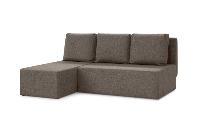 The corner sofa bed Crete is designed in simple rational forms and is compact. The absence of armrests and decorative frills will be an advantage in a small space. The side of the ottoman can be selected before assembly. This model is only available in those upholstery options that are presented in our range.