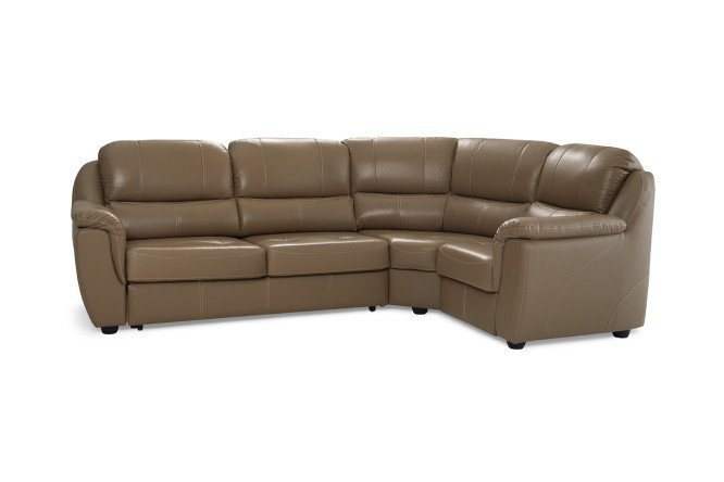 The Missouri corner sofa is characterized by aristocratic restraint, emphasized by the use of genuine leather and smooth contours. Wide soft armrests, large pillows under the back – all these details are ideally suited for maximum relaxation. Material: genuine leather (seat, front part of the armrest pad, front side of the back cushions), artificial leather (drawbar, back of the sofa and armrests)