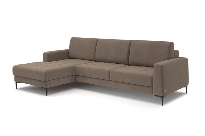 This model is only available in those upholstery options that are presented in our range. The corner sofa bed “Pierre” is ideal for both relaxation and sleep. The sofa has a low silhouette and high supports, which gives it a slender and graceful appearance. Numerous drawstrings on the seats create a textured surface, adding visual interest. The sofa is equipped with a “tick-tock” transformation mechanism, which ensures easy transformation into a spacious bed and has a left-hand side corner. The upholstery material is made of wear-resistant velor. An independent spring block creates the necessary anatomical support and has medium rigidity, which allows you to enjoy comfortable sleep and relaxation. The maximum load on one seat is 90 kg, on a berth – 110 kg. The model is equipped with three back pillows and has two drawers for storing linen, which makes it even more practical; Tall metal legs make cleaning easy.