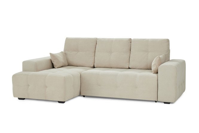 Corner sofa bed Pittsburgh made of velor material (Vegas) in beige color. Each element of the Pittsburgh corner sofa bed is designed to provide comfortable rest: a wide ottoman allows you to recline with a book or laptop, pillows with drawstrings provide back support.
