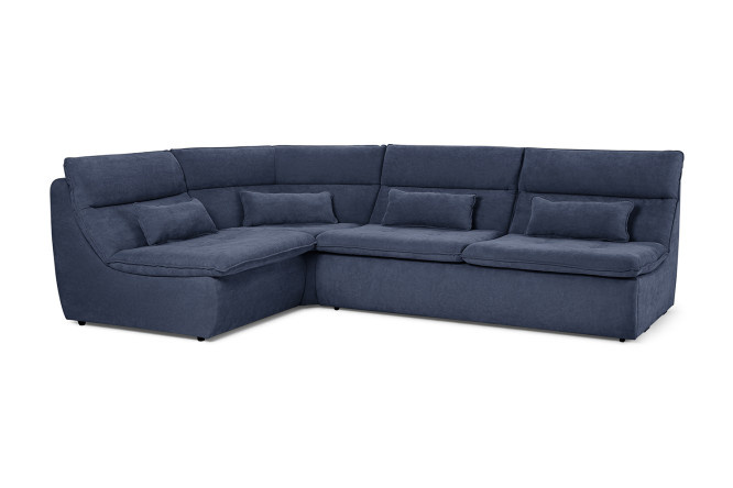 The corner sofa bed Riviera will decorate a spacious living room. The absence of armrests makes the model more spacious. The semicircular shape of the back, upholstery with interesting geometric stitching and comfortable decorative pillows give the sofa a special originality.