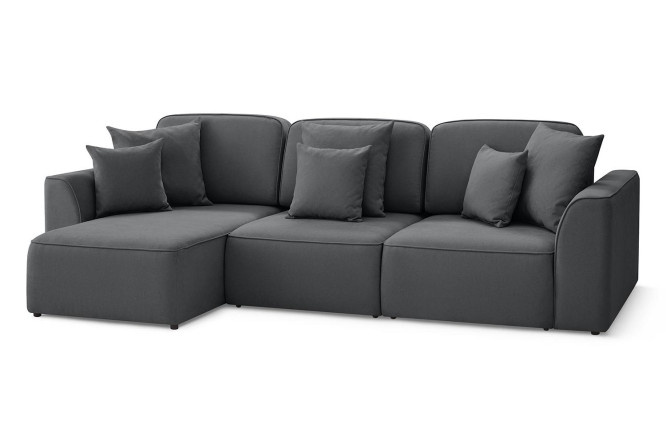 Corner sofa bed SOLANA “Seattle mini” is a stylish and functional solution for the interior. This versatile Eurobook sofa easily transforms into a comfortable sleeper, making it an ideal choice for small spaces. The velor upholstery in dark gray gives it an elegant look, while soft throw pillows add a cozy touch. The sofa is equipped with two armrests and a linen drawer, which provides additional convenience. It can accommodate up to three people, and its sleeping area is spacious enough for a comfortable sleep. The height of the seat and backrest provides optimal support, and the independent spring unit guarantees comfort during use. In addition, the sofa has a water-repellent treatment, which makes it practical for daily use. Its modern design and functionality will fit perfectly into any interior, creating an atmosphere of comfort and style.