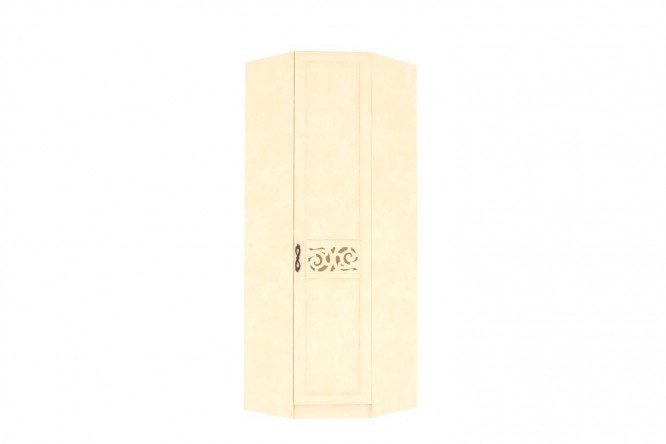 The Alexandria corner wardrobe is designed in the spirit of discreet classics and is in perfect harmony with other elements of the collection of the same name. The carved floral decor on the facade and the original furniture handle, designed in the same style, give the model a special charm. Thanks to its corner configuration, the closet will help you use the bedroom space to maximum advantage. It takes up minimal space, but at the same time contains everything you need: a compact compartment with a rod plus several deep shelves.