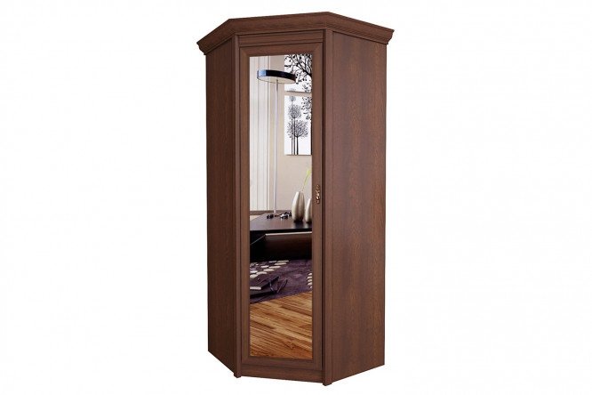 The Florence corner cabinet can serve either as part of a modular collection or as an independent piece of furniture. Massive cornices and decorative end caps give the silhouette of the product a completely finished look. Strict, clear lines of framed facades combined with natural wood decor and exquisite handles will perfectly complement the classic interior of a living room or hallway. A tall mirror located on the door allows you to see your own reflection at full height, and also visually increases the size of the room.