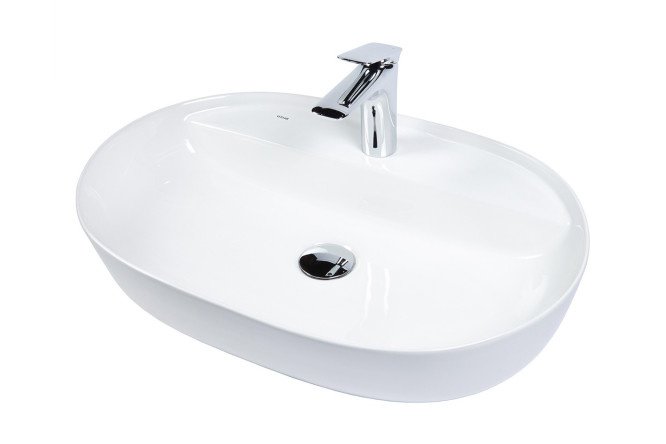The white Bond Oval countertop washbasin with tap hole has a stylish design that will look great in a modern bathroom interior. The bowl sink is made of high-quality sanitary porcelain, coated with a thick layer of glassy glaze, which protects the surface from fading and the accumulation of bacteria, gives it shine and makes it easier to clean. The sink is rectangular-oval, its external streamlined shape does not allow dust to accumulate. Bond BV0100 or BV0105 bottom valves without overflow are suitable for this sink.
