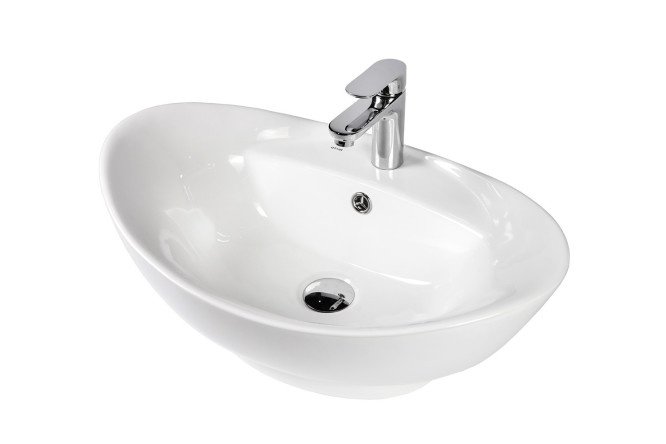 The white Bond Oval countertop washbasin with overflow and tap hole has a stylish design that will look great in a modern bathroom interior. The bowl sink is made of high-quality sanitary porcelain, coated with a thick layer of glassy glaze, which protects the surface from fading and the accumulation of bacteria, gives it shine and makes it easier to clean. The sink is oval, its external streamlined shape does not allow dust to accumulate. Bottom valves with overflow Bond BV0200 or BV0205 are suitable for this sink.