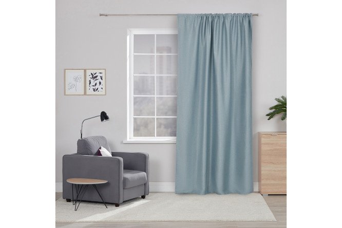 Curtain with MICASA Bria ribbon made of 100% blackout polyester in the color “pale green (7)”.