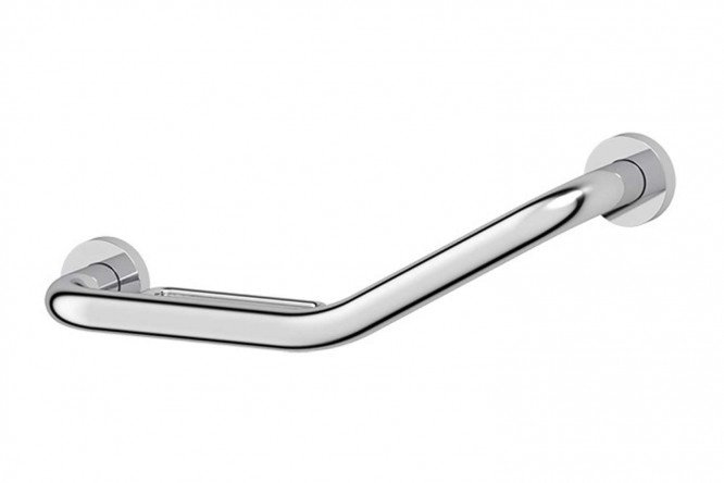 The Harmonie curved handrail is designed specifically for people with disabilities. It will help ensure safety and minimize the risk of accidental falls during water procedures. Thanks to reliable fastenings, the model can withstand increased loads. The ergonomic support handle is equipped with a convenient soap dish-grid. The material used is durable brass with a protective and decorative chrome coating, which gives the product resistance to corrosion and a dazzling mirror shine. The handrail will harmoniously combine with other metal accessories in the bathroom.