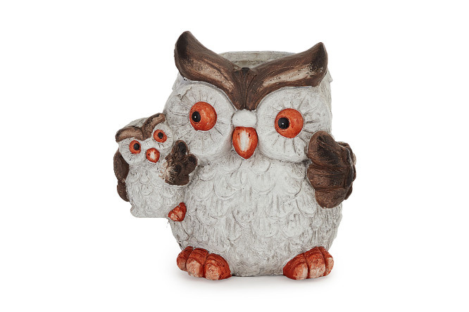 Decorative figurine of an Owl with an owlet with a flowerpot 25.5 cm, Magnesia