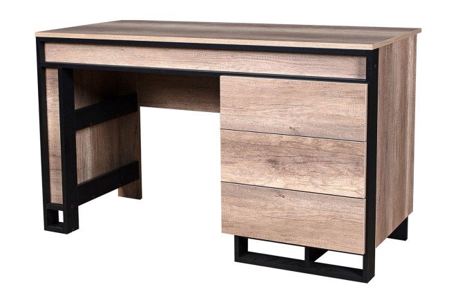 The Canyon desk is a stylish component of your interior. The massive tabletop, made in Canyon Oak color, will make it suitable for work or study. Strict straight lines are formed by the accent black part. The table has three built-in drawers; they will help in storing small items or things that need to be kept at hand. The countertop can be easily removed from dust and other contaminants; you just need to wipe it with a damp cloth. The table legs will also allow for easy cleaning of the floor covering, which can be done by a robot vacuum cleaner.
