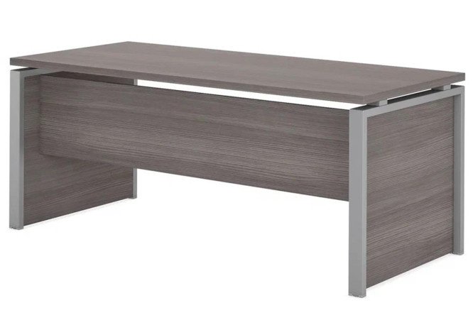 FLASH is a modern office, which means new design solutions, such as the use of metal supports with laminated chipboard inserts. The two colors in which the cabinet is presented: oak 131 and larch go perfectly with the frame supports in metallic silver. Original attachments between the table top and the side support give the executive desk a visual lightness.