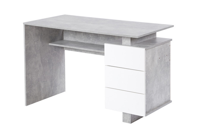 Desk Renzo-2 made of laminated chipboard in the color “concrete, white”.