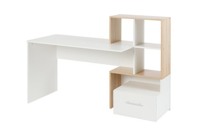 As more people begin to work from home, the importance of properly organizing a home office or study area in a child’s room increases. The SPM-11 table will help you place everything you need in close proximity to your workplace: the model is complemented by a shelving unit with open niches and a spacious drawer. The dimensions of the niches allow you to store files and folders with documents, large format books in a vertical position. There is enough space under the tabletop for a system unit; a printer or scanner can be placed on the top shelf of the add-on. The spacious tabletop is made in white matte decor, the body is finished in wood.