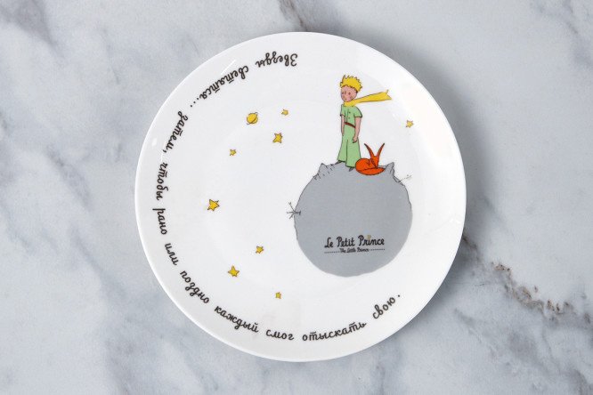 The Little Prince dessert plate in a stylish gift box will be an excellent present not only for young fans of Antoine de Saint-Exupéry’s book, but also for adults who will be happy to return to childhood at least for a moment. The product, decorated with a quote from the story and a touching author’s illustration, will give the owner many positive emotions. The plate, made of high-quality porcelain, is covered with high-quality glaze. The drawing, applied using modern technology, will not lose its clarity and brightness. The materials used in production are environmentally friendly and safe for children’s health.