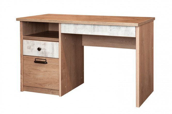 The Diesel desk with one cabinet is an excellent option for arranging the work area of a youth room. Cool colors, laconic loft-style design, impeccable execution and the absence of unnecessary details that distract attention – all this puts you in a businesslike mood, allowing you to fully concentrate. The body of the model is made of high-quality laminated chipboard with a decor that imitates freshly planed wood in the Madura Oak shade. A darker “Wellington” tone was used for the 28 mm thick table top and the base of the niche; the original design was used for the facades. The original fittings fit harmoniously into the overall concept of the given style.