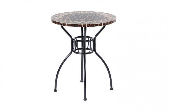 A round table with a ceramic top is an ideal solution for arranging a dining area in the kitchen, as well as in a summer cottage or private courtyard. The metal base on four legs is a stable welded structure with a coating that protects against corrosion. The ceramic tiles from which the tabletop is laid provide an attractive appearance to the product and resistance of the table surface to temperature changes. A table with a tiled top is easy to clean, does not require the use of a tablecloth, and you can place hot items on it.