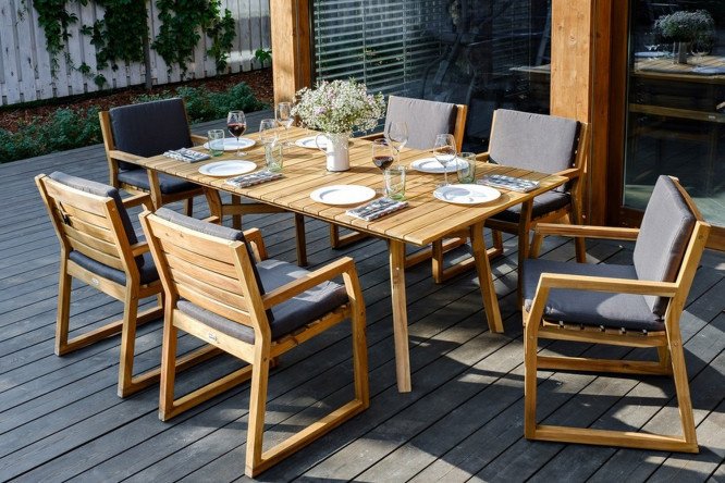 The dining table from the Modena collection will be the ideal addition to your country house interior. This piece of furniture is made of solid acacia; this wood is resistant to moisture and damage. Due to the presence of gaps between the slats, if moisture gets on the table, it will not linger, so you […]