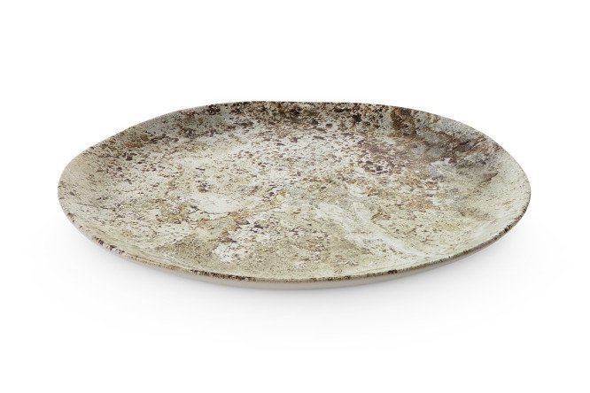 The Gabbro plate is stylized as a product made from the amazingly beautiful volcanic rock after which it is named – gabbro. The prototype of dishes among ancient people were large flat cobblestones. And even today, in the age of advanced technology, the picturesque natural pattern and color of natural stone will serve as an excellent frame for mouth-watering dishes. The outside surface of the product is white. The model is made of environmentally friendly glazed ceramics, it can be used in the microwave oven and washed in the dishwasher.