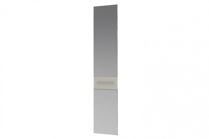 Door with mirror Hudson is designed for assembling one- and two-door wardrobes from the collection of the same name. The mirror canvas is visually divided by a decorative insert made of PCP. The horizontally located long handle serves both as a decorative element and provides convenient opening of the cabinet.