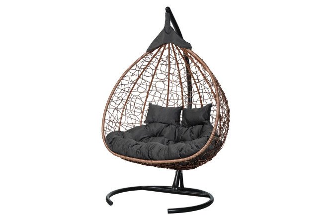 Double hanging cocoon chair Fisht 135x190x100 cm, base and frame color black, finish hot chocolate