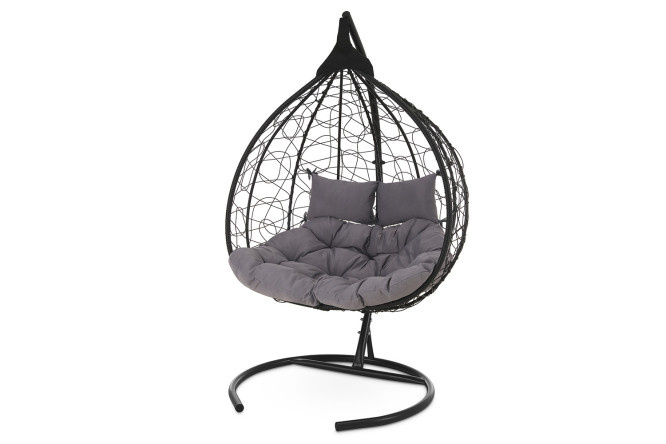 The Fisht fis hanging cocoon chair will allow you to avoid children’s rivalry – you can sit in it together to spend moments of relaxation in the garden, at the dacha, or on the open veranda. The weaving is made with special locks that prevent the artificial rattan from unraveling. The basket is equipped with a pillow in a water-repellent fabric cover and headrests – they can be easily attached to the frame using ties. The shock-absorbing spring on which the product body is suspended is covered with a decorative overlay. The metal stand with a round base is resistant to tipping.