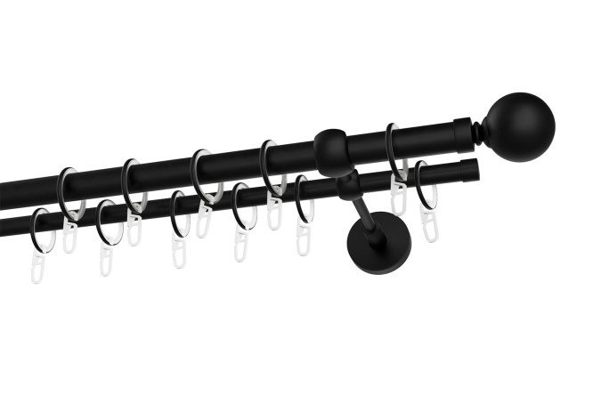 Double-row cornice COMFORT Ost is a ready-made kit for hanging two types of curtains. The product is made of durable metal, so it can easily withstand even the weight of curtains made of heavy fabric.