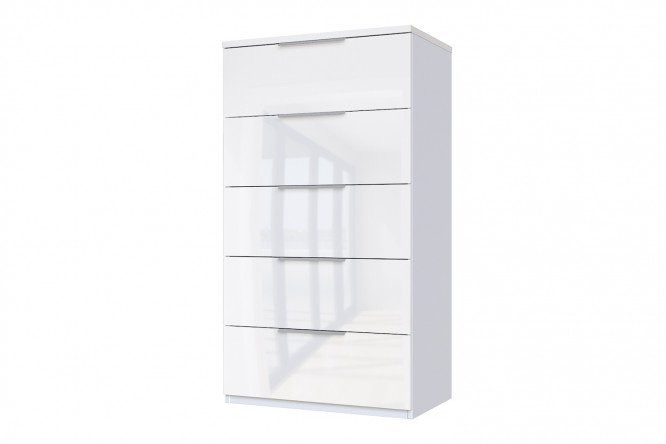 The Tyler chest of drawers is universal – you can use it to organize storage of things in the bedroom or living room. The drawers are convenient for storing textiles: clothes, bed linen, tablecloths, fabric napkins for table setting. Ball guides allow drawers to extend fully, making it easy to reach deep-stowed items. The laconic facades are made in a white finish and complemented with metal profile handles. The design solution is based on the idea of visually increasing space: reflections in glossy surfaces create volume and the illusion of an abundance of light.