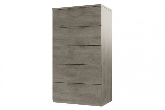 The Tyler chest of drawers will be appreciated by those who love natural motifs in the interior, because the facades of this piece of furniture in texture are very reminiscent of untreated wood, which corresponds to the concepts of such styles as country, loft or Provence. Spacious drawers, equipped with comfortable handles, easily extend to their full width – that’s why it’s easy to find the right thing in such a chest of drawers. The product is equipped with a plinth, so that small items or children’s toys that have fallen on the floor will not roll into the space between the bottom drawer and the floor.