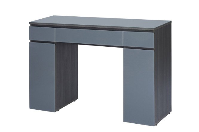 The Solda dressing table will fit perfectly into the interior of a spacious bedroom, decorated in loft or modern style. The design is ideal for minimalists. The product is very roomy; for storing accessories there are three upper drawers that easily slide out along the guides, and two closed elements on the sides with shelves and hinged doors. Thanks to the glass cover, you can use the work surface without fear of damaging or staining the chipboard.