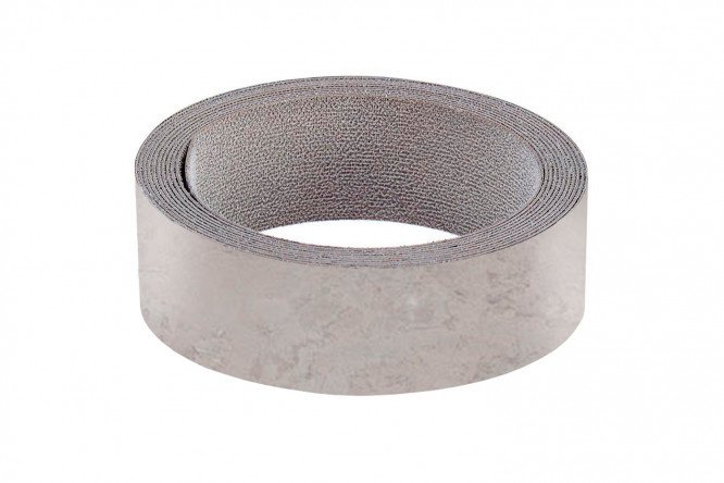 Edge with glue made of plastic material, matte finish, color “betao (3045)”.