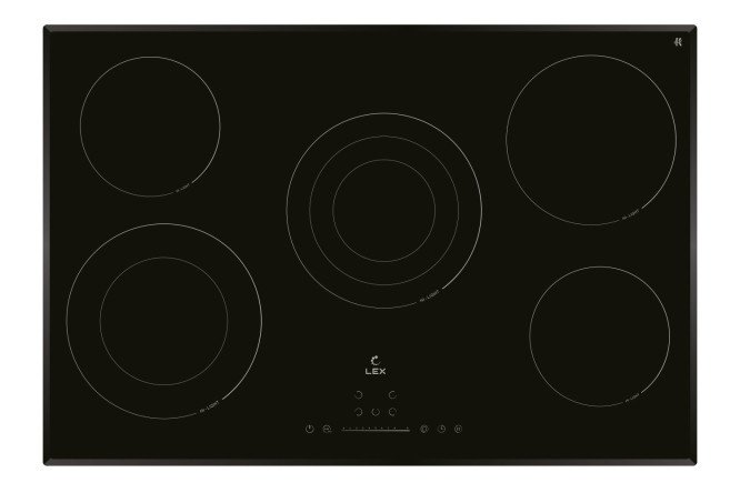 The LEX EVH 772A BL electric hob has a HiLight heating element, which ensures reliable operation and uniform cooking. This model has five burners, two of which have expansion zones, necessary for cookware with a large bottom diameter. The black glass-ceramic panel has a panel lock function, a residual heat indicator, a combined overheating and boil-over protection system, and a programmable automatic shutdown timer. The thickness of the model allows the hob to be installed in thin countertops.