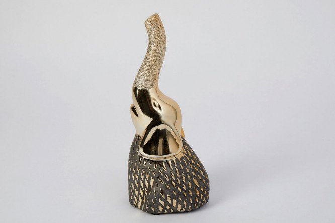 The Elephant figurine, 25 cm high, will decorate both the display cabinet and the desktop. A ceramic gilded figurine depicting a trumpeting elephant will also do an excellent job as a present and will remind its owner of the giver for a long, long time. The elephant is an animal revered in many traditions, and therefore its images are always symbolic, and elephant-themed gifts are full of meaning. So, by presenting someone with an image of this magnificent animal, you thereby wish him success, wisdom, luck and stability.