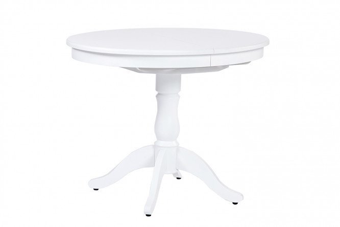 The white Bari table is a worthy choice for creating a dining group in the kitchen or dining room. The model leaves room for maneuver – a small family can easily sit around it, and if guests arrive, the length of the table can be increased. The tabletop is extended using a butterfly turning mechanism; additional inserts are stored in the underframe. The oval-shaped tabletop is made of veneered MDF board, the leg located in the center is made of solid beech. The stability of the product is ensured by height-adjustable supports.