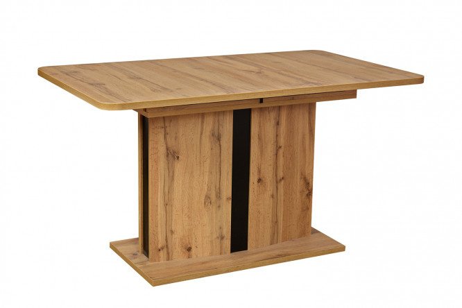 The Odyssey extendable table has optimal proportions: it is compact and a dining family will feel comfortable at it, but even if guests come, there is enough space for everyone. The length of the table top is increased using a Poettker synchronous mechanism equipped with stoppers. The massive support leg is based on a solid base, stable due to its large area. The model is made in a warm wood decor that convincingly imitates the natural grain of oak wood.