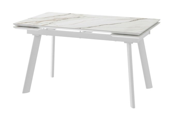 The porcelain stoneware countertop is highly durable and durable. The table has two side inserts for expansion. To increase the size of the table, you need to pull out the inserts from under the main table top. Metal supports ensure a reliable position of the table on a variety of surfaces.