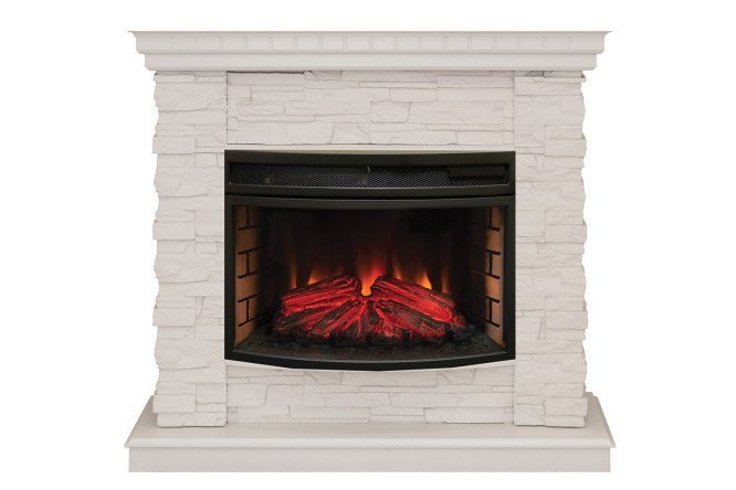 A country-style fireplace set will organically fit into both traditional and more modern interiors thanks to its laconic design and strict forms. The Elford fireplace set is distinguished by its restraint and laconic design. Veneered elements with textured veins combine favorably with the relief of rocky stone. The simple design allows you to move the fireplace to any room or building.