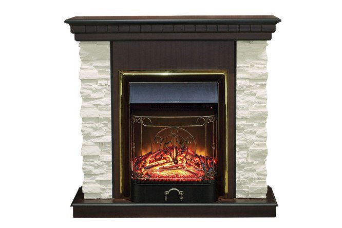 A country-style fireplace set will organically fit into both traditional and more modern interiors thanks to its laconic design and strict forms. The Elford fireplace set is distinguished by its restraint and laconic design. Veneered elements with textured veins combine favorably with the relief of rocky stone. The simple design allows you to move the fireplace to any room or building.