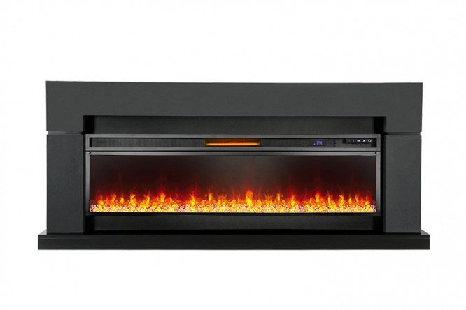 Hearth Vision 60 LED FX: – Light-emitting diode (LED) bulbs – 6 heating levels – 4-step flame brightness adjustment – 4 options for illuminating decorative fuel – Thermostat – Digital display – Remote control – Decorative fuel: yellow pebbles and clear crystals