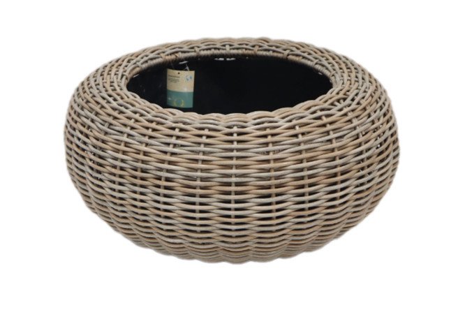 A spectacular flowerpot from the Astra collection is perfect for decorating a garden plot, an open terrace or a balcony. Artificial rattan is almost indistinguishable from natural wicker in appearance and at the same time has much greater resistance to moisture, ultraviolet radiation and temperature changes. This stylish and practical accessory will not fade in the hot summer sun or become deformed in the pouring rain. You can safely leave the pots outdoors until frost. The material does not emit toxic substances even with strong heating, and therefore is absolutely safe for health. Caring for the pots is very simple: dust and dirt can be easily washed off with plain water. This round, voluminous pot in a natural shade is ideal for growing petunias, lobelia, nasturtiums and other annual flowers.
