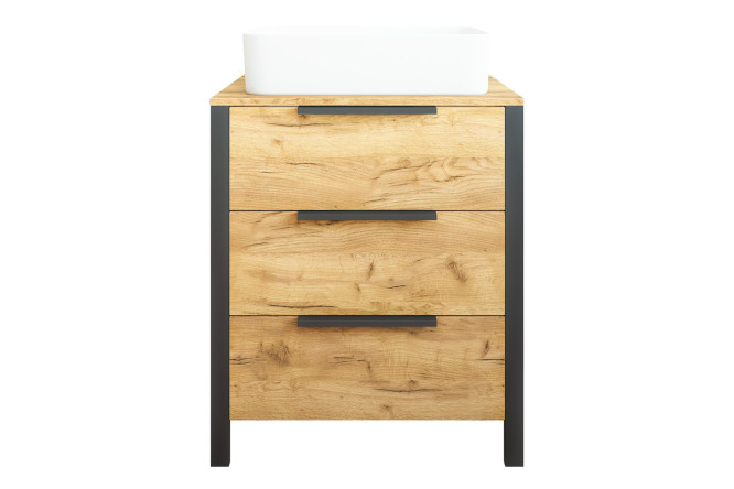 Floor cabinet Sanflor Gard 70.2 cm, frame color black, kraft oak gold, facade kraft oak gold