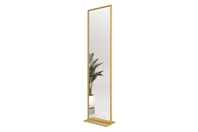 A large floor-standing rectangular full-length mirror is an ideal solution for studios, dressing rooms, fitting rooms and can fit perfectly into any modern interior. Structurally, the mirror canvas is located in a durable metal frame connected to a fairly massive base, which makes the mirror stable and safe. It is also worth paying attention to the impeccable quality of the mirror cloth.