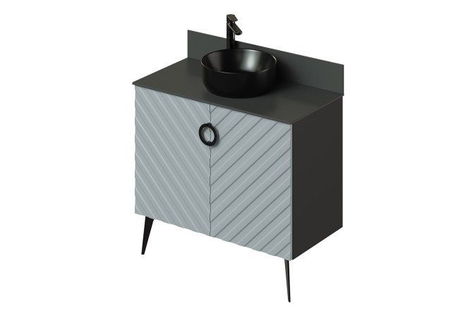 The cabinet with countertop is suitable for any table-mounted sink without a hole for a mixer with one of the dimensions of 370 mm or a diameter of no more than 400 mm.