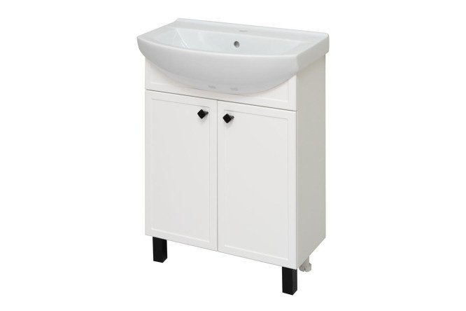 Sink cabinet RUNO RIMINI – made in Provence style. The warmth and comfort of a home, antique charm and elegance, as well as thoughtful functionality will help decorate the interior of any bathroom. The product has two hinged doors and is equipped with one internal shelf. The kit includes: hinges with built-in closer, 2 handles and 4 legs. The sink is not included and must be purchased separately. The cabinet is matched with a ceramic sink “Best 65” (647/428/197 mm).