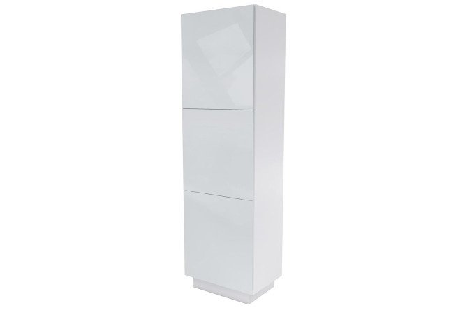 The three-leaf floor-mounted cabinet module from the MD Color collection is a stylish and spacious storage system with glossy facades. The solid doors are covered with glass, and the central transparent door reveals shelves on which beautiful dishes or elegant interior decorations will look impressive.