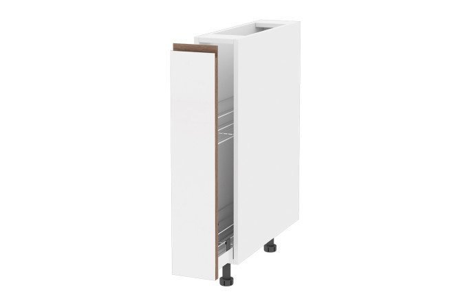 Front for a floor cabinet with a sliding basket Nicole 14.6×71.6 cm, super matte white; handles, edges – roddy oak