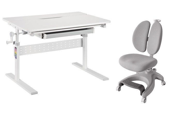 The FunDesk furniture set is the ideal solution for creating a comfortable workspace for children. It includes a Colore Gray desk and a Solerte Gray chair that provide functionality and safety. The locking swivel handle guarantees a secure position of the tabletop at any height, allowing it to be easily adjusted according to the child’s […]