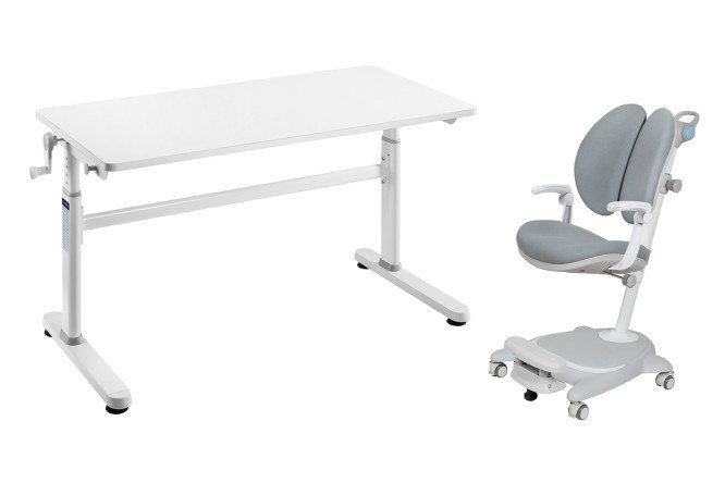 The Cubby furniture set is a stylish and functional solution for creating a comfortable workspace for your child. The elegant combination of white and gray colors makes this set universal for any interior. Adjustable tabletop height allows you to adapt the desk to your child’s height, ensuring comfort during the learning process. The non-reflective surface protects your child’s eyes from glare and harmful reflections, creating an ideal learning environment. The crank lift system provides easy and quick adjustment of the chair height, allowing the child to sit comfortably at the desk. Adjustable feet adapt to most floor unevenness, ensuring stability and safety. The multi-functional steel hook is ideal for hanging a bag, backpack or useful items, adding convenience to use.