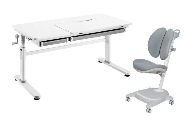 The Cubby furniture set creates a cozy and functional space for work and study. Its modern design in white and gray tones fits easily into any interior, giving it a stylish and fresh look. The Iris Gray desk offers a comfortable workspace where you can focus on your studies or creative tasks. Its adjustable tabletop allows you to adjust the angle of inclination, which makes the work process more comfortable. A drawer provides storage space for all your essential supplies, helping you keep your desk organized. The Arnica Gray chair provides excellent support and comfort. It’s ideal for long hours of work or study, allowing you to focus on tasks without unnecessary discomfort. Together, the desk and chair form a harmonious combination that is not only pleasing to the eye, but also promotes productivity. The Cubby set is an excellent choice for creating a comfortable workspace for both children and adults.