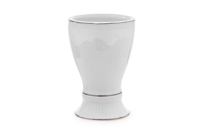 The Empress toothbrush glass is made of white ceramic with silver decor and will look impressive in the bathroom on the sink or countertop. This accessory, made in a classic style in the shape of an antique vase, is decorated with a barely noticeable floral pattern. Ceramics do not emit toxic substances and do not absorb foreign odors, and are moisture resistant.